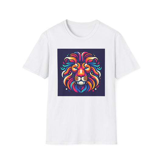 Colorful Lion Unisex Softstyle T-Shirt - Vibrant Animal Art Tee